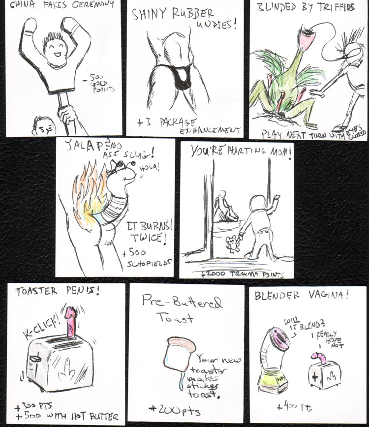 I didn't get very many blanks tonight (boo) but I think I made the ones I got count, at least in terms of squick factor.� This game brings out the worst in me.