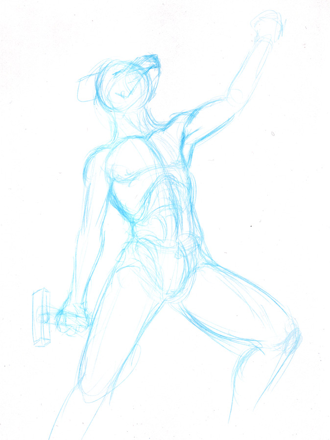 This was probably the most finished of the lot. For some reason the pose reminds old Soviet propaganda posters, hence the title and the suggestion of a hammer.