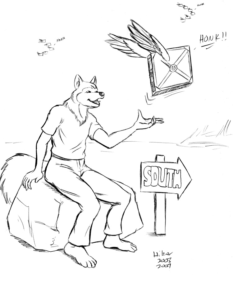 He'd done all he could. He'd fed it, taught it to fly, and now finally it was time to release it.At first it seemed uncertain, but then it heard the calls of its brethren in the great data flocks overhead. It began to flap its wings, slowly rising, never turning back to the wuff that had raised it.It seemed to find new strength in its wings as it rose, and let out an exultant "HONK" to announce itself to its new world!And so began the great Server Migration of 2007... | |