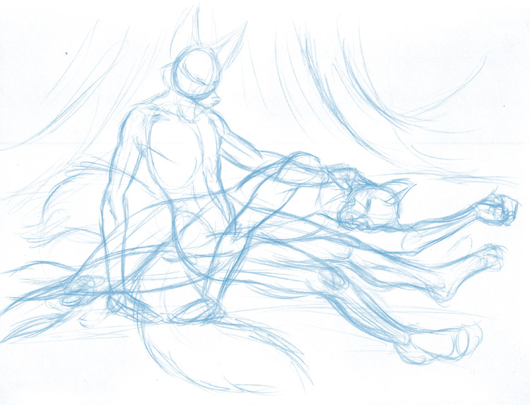 As I suspected, I felt the deep need to take that tiny thumbnail sketch from sunday and try to turn it into my next nightmare/coloring project.� This version's about three times the size of the 'original.'