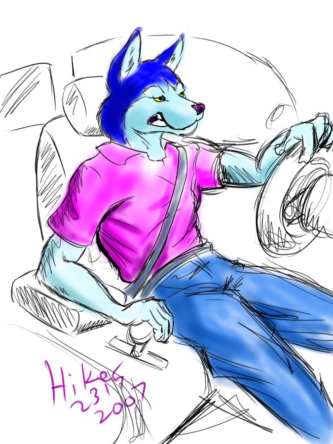 A quick doodle of the Wuffy as he deals with the traffic outside Montreal.� If you've never tried it, don't... the legends are true.