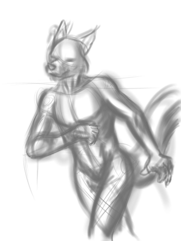 This was an experiment... tablet or not I have a very set method for drawing. Tonight I was so fed up I couldn't get anything decent-looking going.� I had a stick figure and couldn't flesh it out in any way that made me happy.