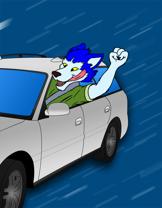 A special collaboration with the Wuffy.� He drew the car, I drew him.