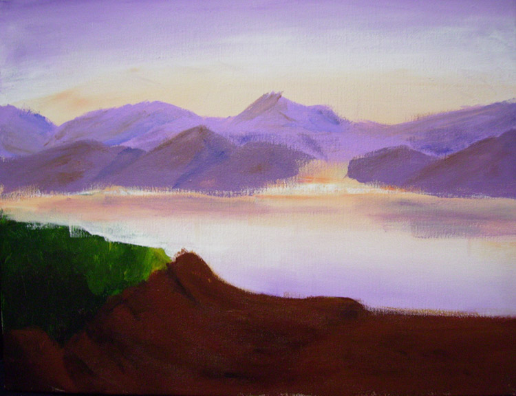 This is not a painting of PEI.� PEI has no mountains.� Not even across the water.