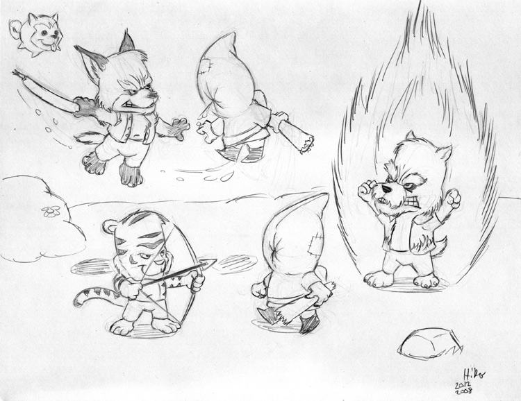 Clockwise from top left: Hiker (with Wuffy animal orb), Angus, and Marlos.