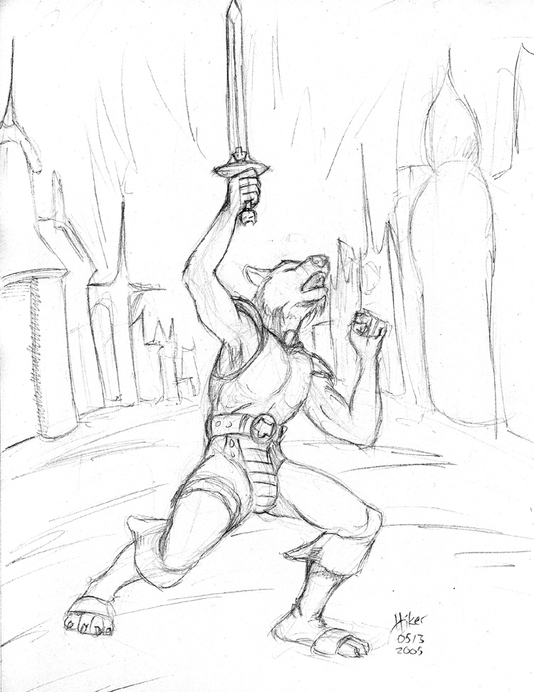 I'm not happy with this pose. I'd better go study some Frazetta reference now.