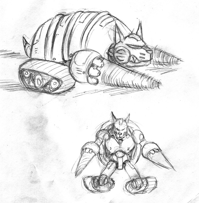 A quick, on-the-fly doodle of arguably the most memorable opponent yet seen in Armour Beast Crusher Daioh!� This bad boy caused all manner of trouble for our other Russian bear, Vlad.� It likes to burrow underground and hide, sending those wicked drills out as flying remotes to do the dirty, dangerous work.�