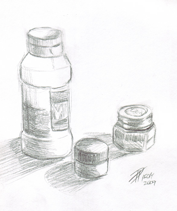 One is a bottle of medium, one is some lip balm, and that octagonal thing is full of super-hot Tiger Balm, which is awesome at relieving joint pain by BURNING YOUR FLESH.