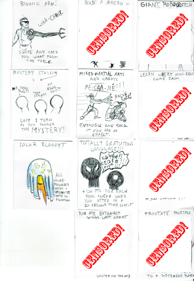 The latest wave of completely tasteless crap to flow forth from my pen via the conduit of 1000 Blank White Cards.