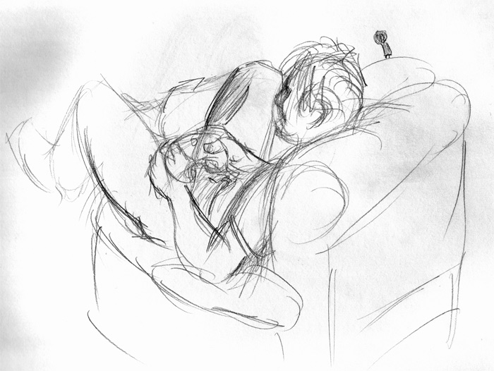 I did a bunch of quick life drawings of Kale as he played Doom on the 360.