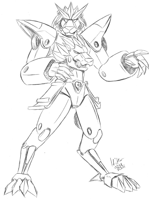An attempt at designing Grand Leo, a new antagonist/mentor/jerk from Armored Beast Crusher Daioh.