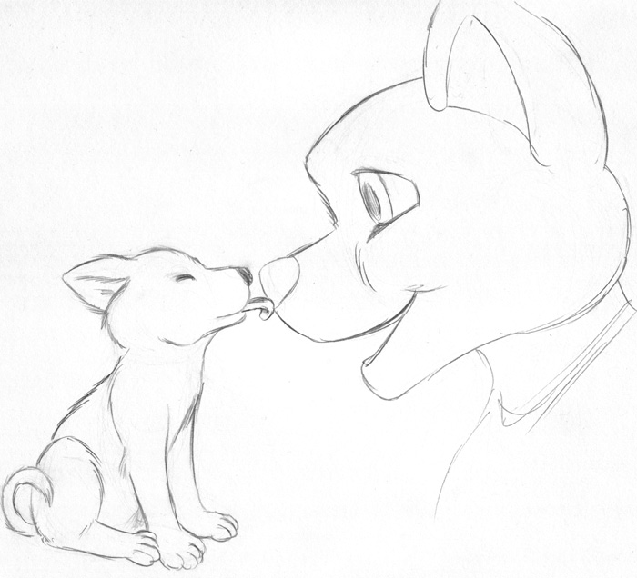A bit of toothrotting cute based on actual incidents.� Taiga is proving to be one cool little customer:� confront with giant furry heads, his first instinct is to taste them.� I wish I had gotten a picture.