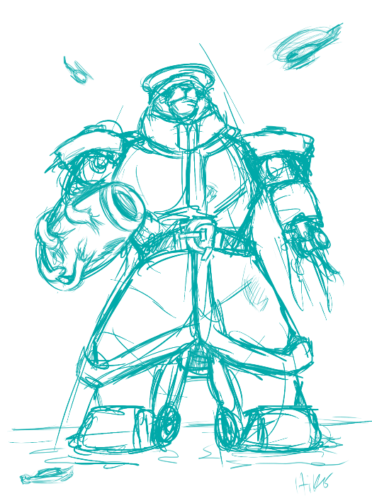 The back story is that a long lost robot of ridiculous size has reactivated and is marching on Neo-Neo-Neo Tokyo.� And for added fun, it's a mech from the New Soviet Union, modeled on Tsar Alexander II (who was, apparently, a husky.)