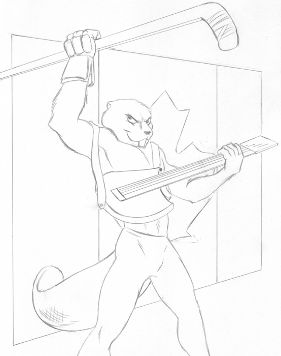 Beaver playing bass with a hockey stick. I could not make it more Canadian without adding beer and back bacon.