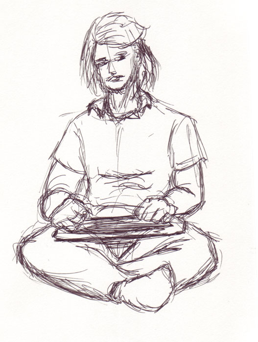 A drawing from life of a guy we hadn't seen for a while.� He didn't know I was doing it.