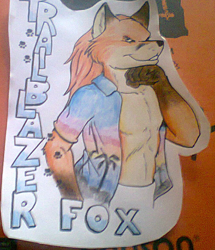 A badge I did for Trailblazer Fox. Pretty much the only thing I drew at Feral this year, alas.