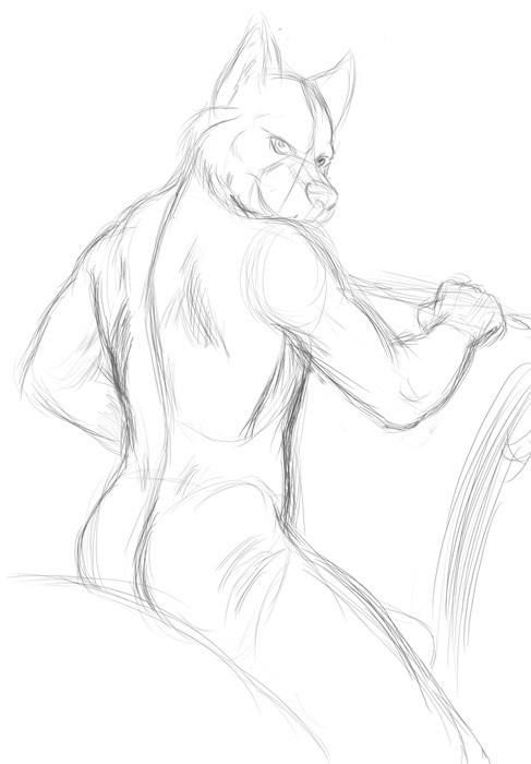 Drawing a sketch from the ground up is interesting in PE. I can have a reference image right on the screen, but the tablet sometimes makes precision a dicey prospect. Also, forgot a tail. Wah.