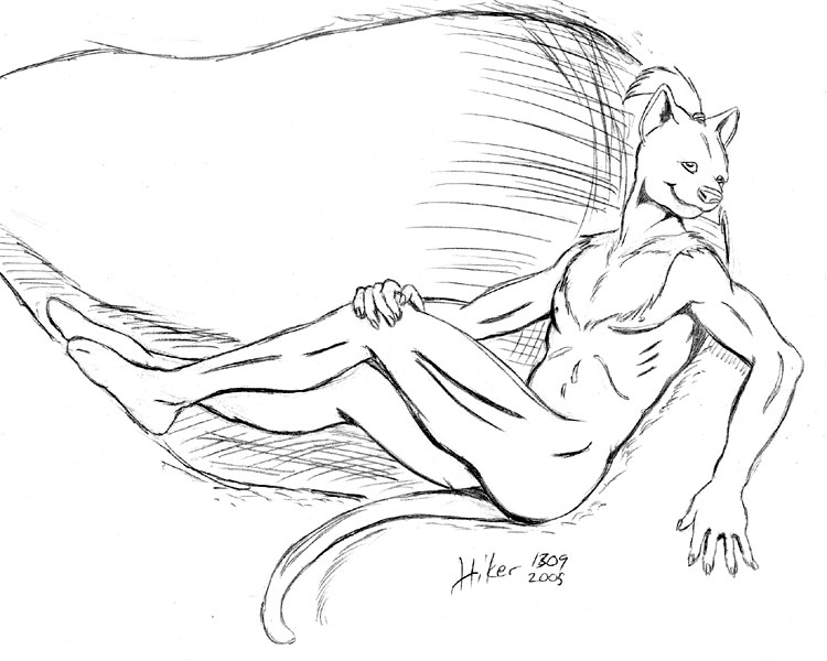 This was a really, really hard thing to work into my usual style. If anyone's wondering about the wierd shading... well, Leinir has rubber skin. And the face is supposed to be a mix of feline and canine characteristics, but without fur.