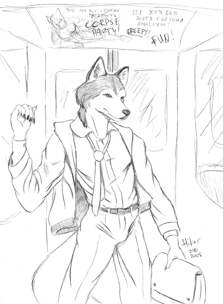 But this is a husky. But you knew that, because I never dress this good. I don't draw clothes nearly enough. Armor and space jumpsuits don't count. So the idea was to draw someone wearing mundane clothes. Also, shading is becoming a drug. Silly, yes?