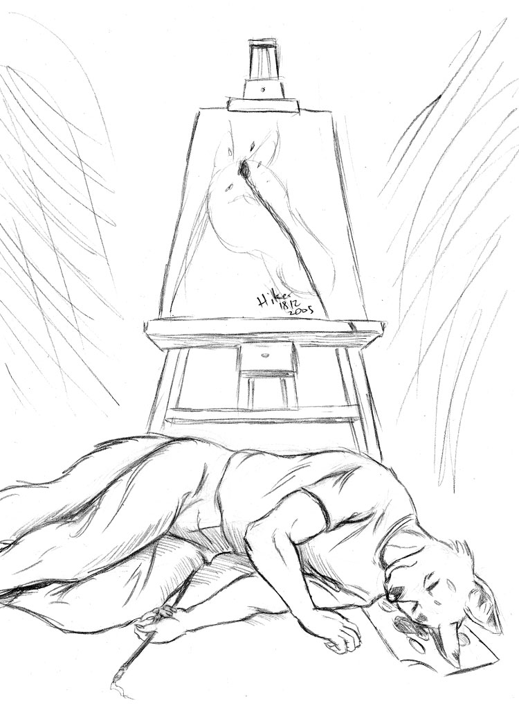 Wuffy suggested I draw a sketch along those lines, and in my exhaustion (and, to be fair, turkey coma... Apartment Christmas was today) I did this. It's not great but it will do, and sums up my current mental and physical state nicely.