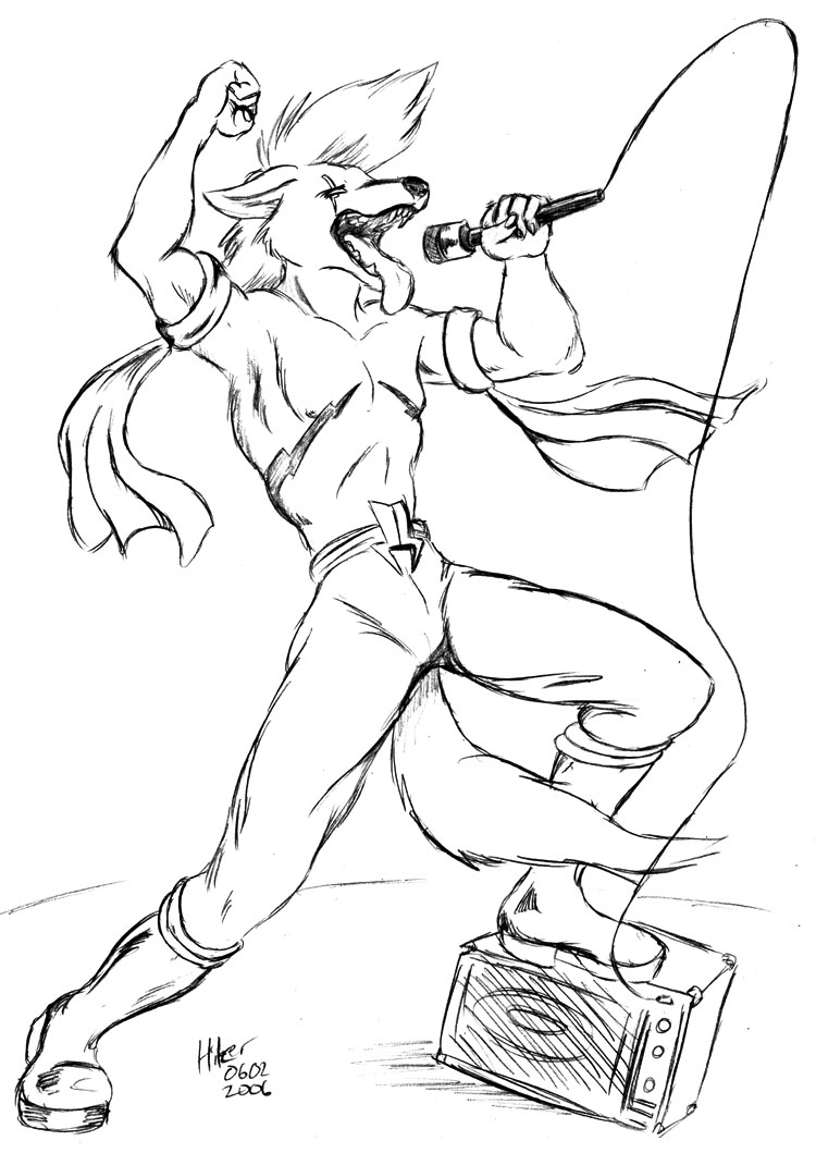 Ace Feral, lead singer of the 1980s punk band Screaming Lunch, as he appeared in concert on Feb 6th, 1981. Feral was best known for his ability to turn any song into a screeching ballad of anarchy, and for his sexual prowess. Of the former there is ample proof; the opening shouts of Anarchists Eat the Weak still bring club patrons to their feet. Twenty years and two car commercials have done nothing to strip away its raw power.Of the latter, there is less evidence. If even half of what Feral said in interviews were true, half of the people reading this magazine would be his bastards.I've been listening to a lot of 1980s pop lately. Remember when someone could dress like this onstage and be considered a badass? I miss those days. Really, I do. | |