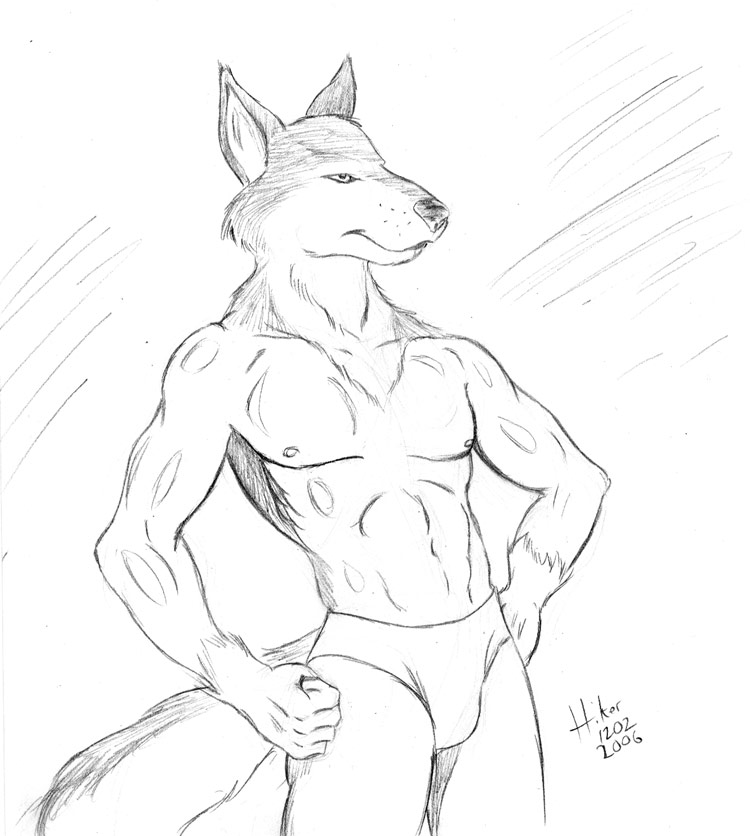 Based on a description sent to me by a friend of Leinir's, this rubbery guy is supposed to be a blend of wolf and german shepherd, as well as rubber and fur.� However, this was a pretty rushed job- it was almost 3 AM and I was dead on my feet.�