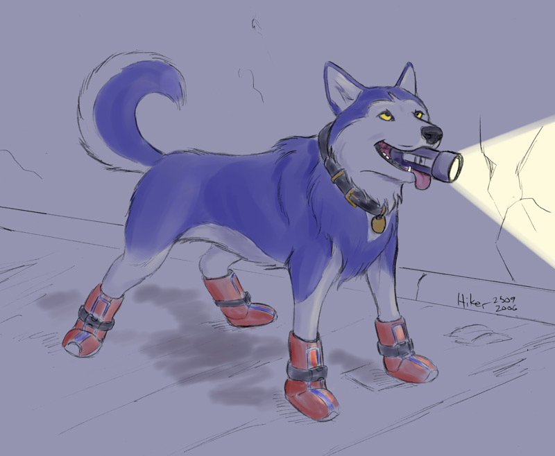 Like BALL!, this was a request.� He wanted to see his husky form with a flashlight and little doggie boots.� I hope he likes it.