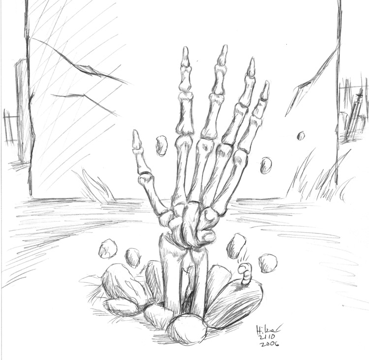 I debated putting this into either Practice (it started just as me sketching the bones of the hand) or Holidays (because I went all living dead with it.)� I've decided on Holiday.�