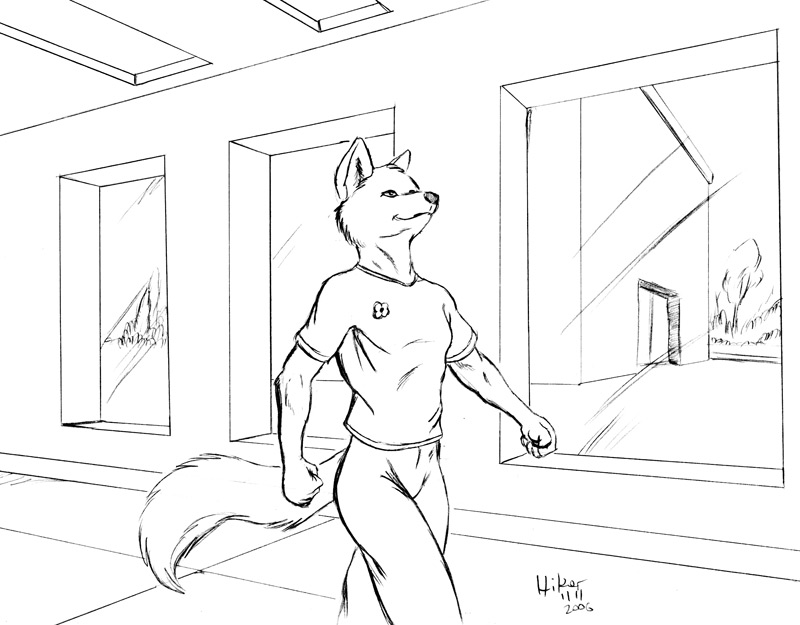 The perspective and figure were roughed in on scrap paper, then light-tabled onto a clean sheet of paper for polishing and posting.� It took more than two hours, and this is pretty basic perspective... I fear the amount of time something elaborate might consume!