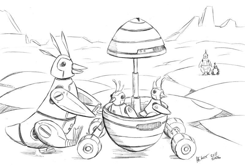 I don't know. The idea took hold early in the day at work and it became impossible to NOT draw this tonight.